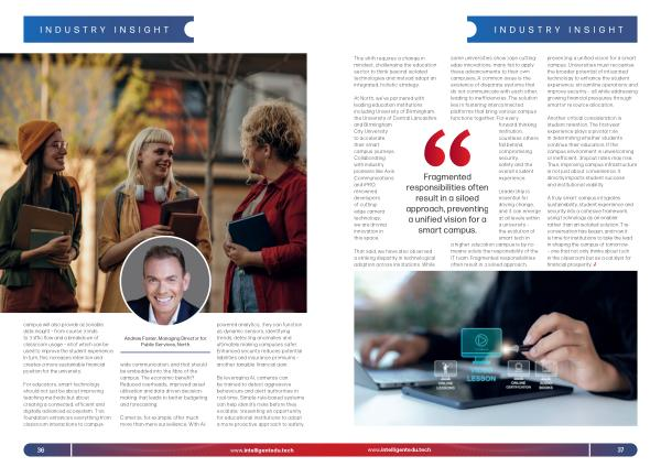 some universities showcase cuttingedge innovations, many fail to apply these advancements to their own campuses. A common issue is the existence of disparate systems that do not communicate with each other, leading to inefficiencies. The solution lies in fostering interconnected platforms that bring various campus functions together. For every forward-thinking institution, countless others fall behind, compromising security, safety and the overall student experience.